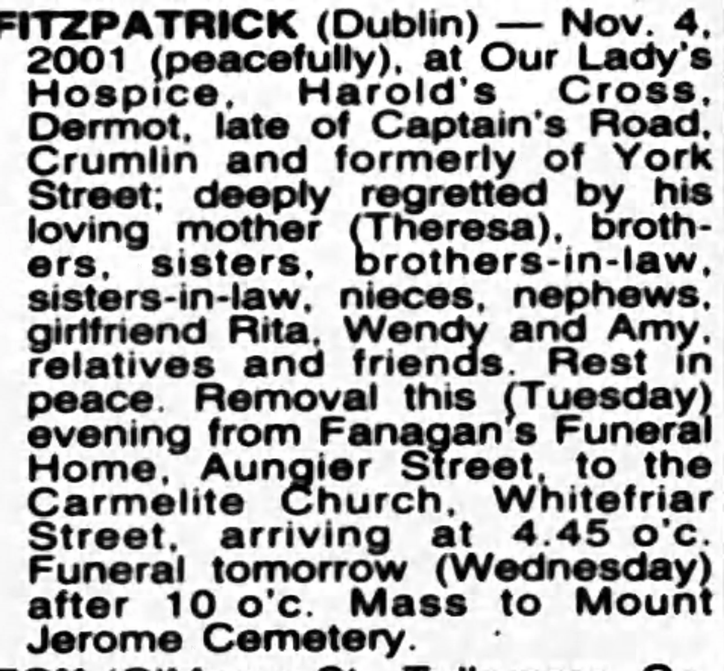 Raymond was widely reported in the Irish press as having been taken to Richmond hospital unconscious from Arbour Hill’s AIDS separation unit. His mother spoke on RTÉ News, saying her son had overdosed on prescription drugs but insisting he had not taken them himself. The reports prompted a wave of concern and questions about safety and supervision within the unit, and about how a man in Raymond’s condition came to be exposed to medication, allegedly, not self-administered.