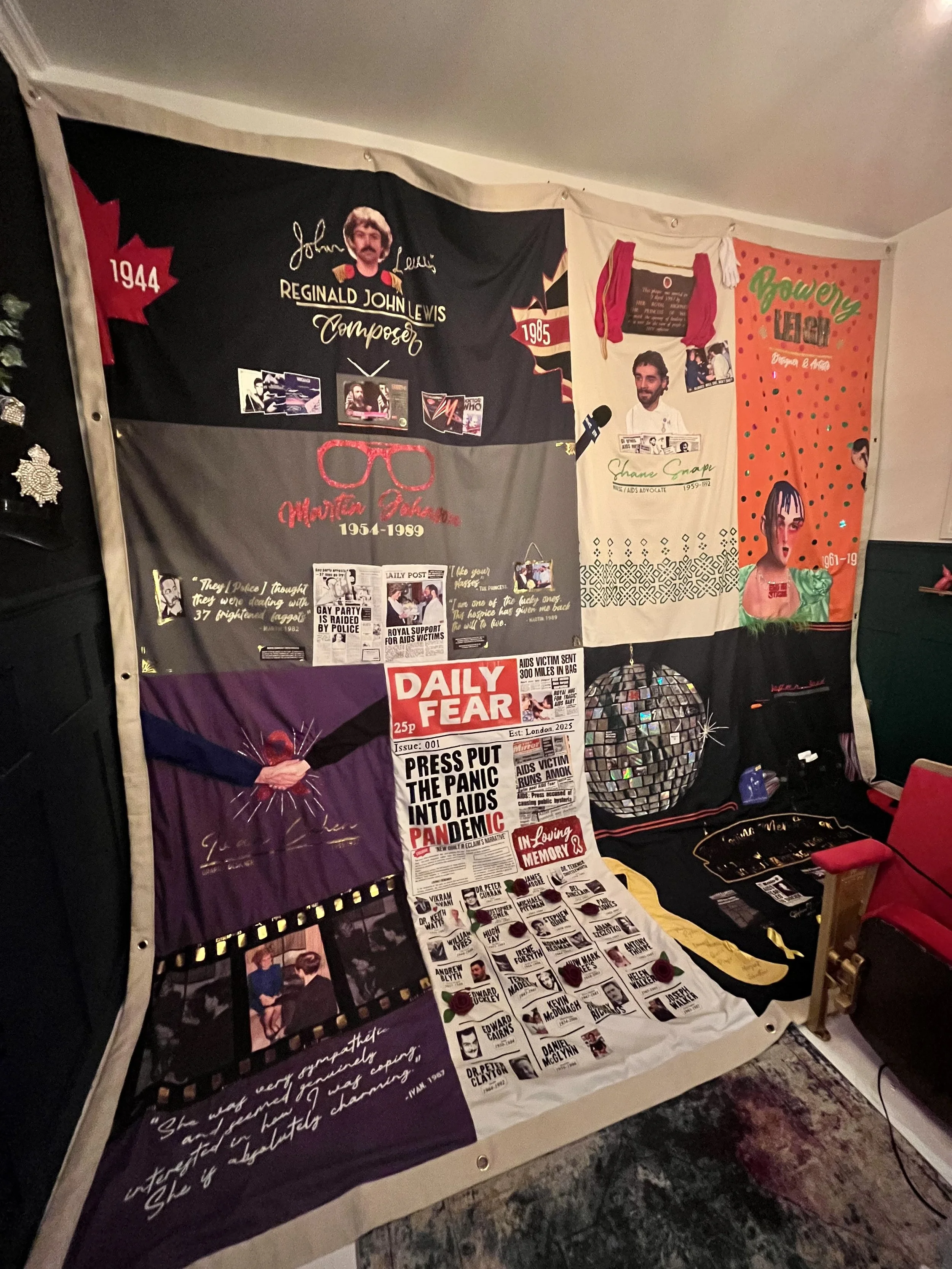 Having just seen the UK AIDS Memorial Quilt displayed in its entirety at the Tate Modern in the summer of 2025, I and a friend were deeply disappointed to find no dedicated quilt panel for Leigh Bowery, especially as I had come directly from the upper‑floor exhibition celebrating his work and legacy.